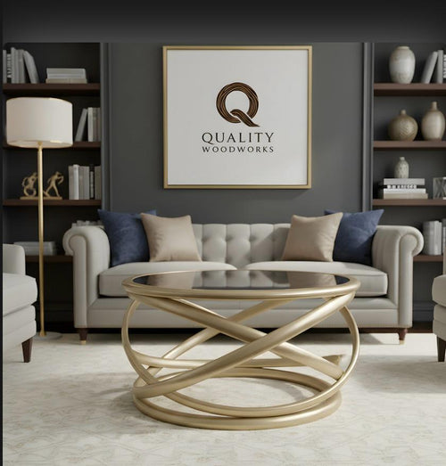 Beech Wood Round Table Bracelets Shape with Glass Top