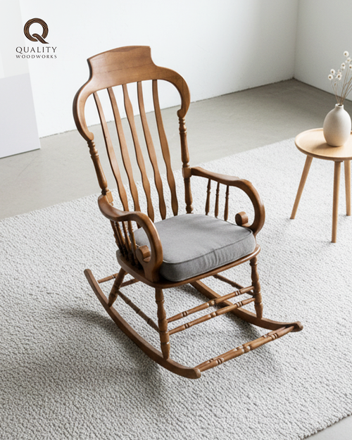 Elegant Rocking Chair (Design B) with Cushion - 100% Beech Wood